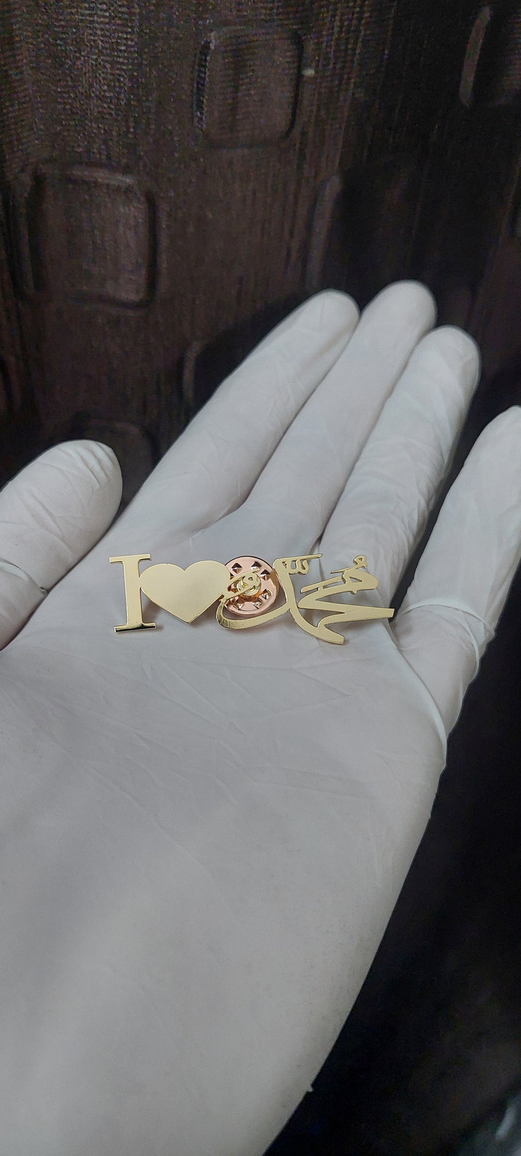 Elegant "I Love Mohammed" Lapel Pin – Premium Gold & Silver Plated Brooch