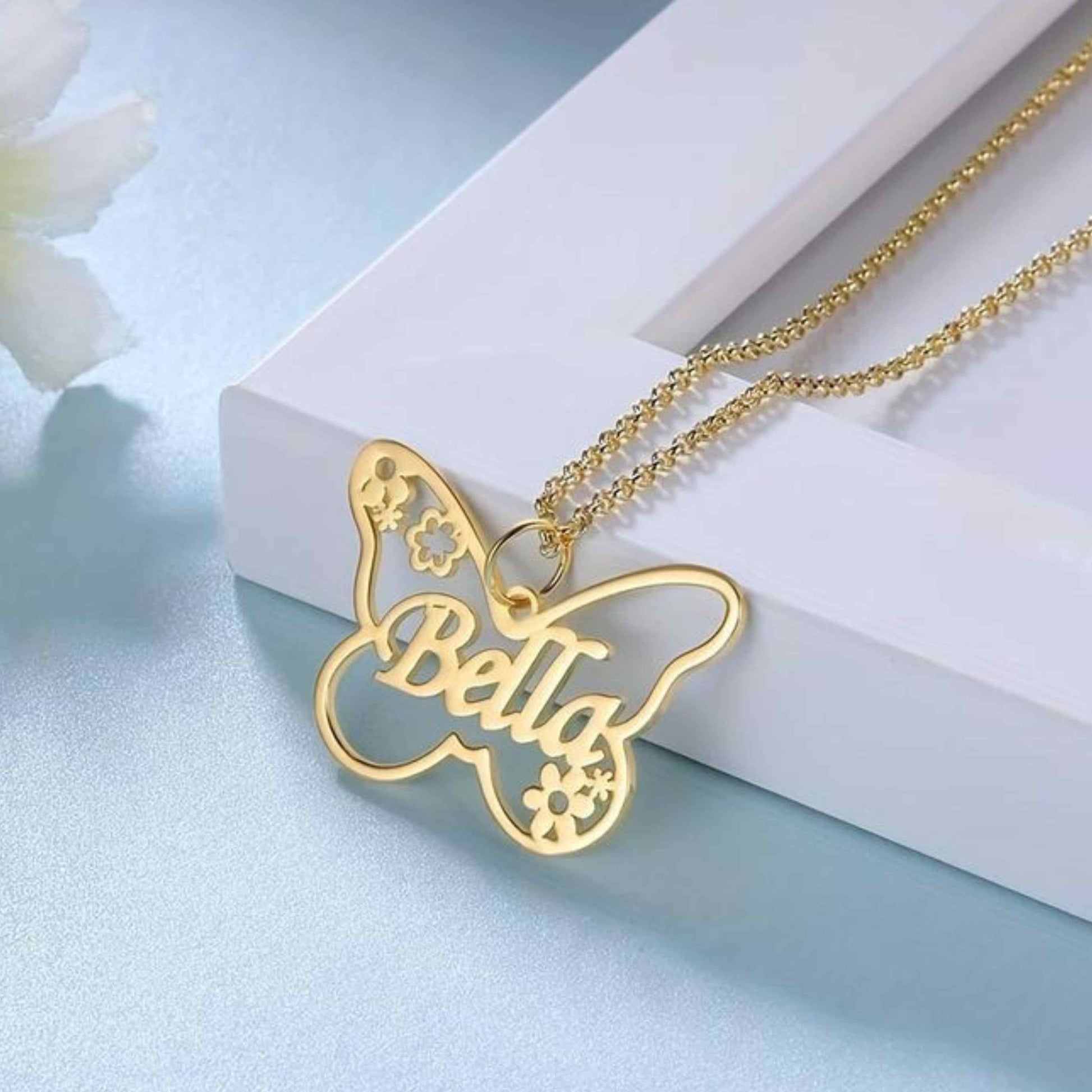 Fluttering Blooms - Personalized Butterfly Flower Name Necklace"