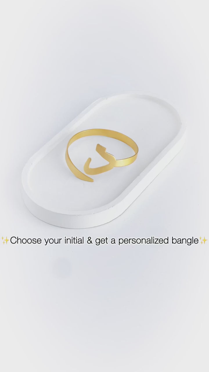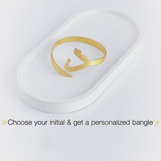 Indulge in the elegance of Arabic calligraphy with our Customised 22-Carat Gold Anti-Tarnish Arabic Alphabet Bangle, a stunning piece designed to reflect individuality and cultural heritage. Crafted from premium 22-carat gold, this bangle boasts a luxurious shine and is treated with an advanced anti-tarnish coating, ensuring its brilliance and beauty remain untarnished over time. Personalise your bangle with Arabic letters, a meaningful name, or a special word, creating a unique and deeply sentimental accessory. Whether it's a representation of your own name, the initials of a loved one, or an inspiring word that holds personal significance, this bangle is designed to tell your story in the most elegant way possible. Designed for both everyday elegance and special occasions, this bangle is a perfect blend of tradition and modern sophistication. Its sleek, timeless design ensures it can be worn alone as a statement piece or stacked with other bracelets for a chic layered look. With its smooth, polished finish and comfortable fit, this bangle is not only a stylish accessory but also a meaningful keepsake to cherish forever. Ideal as a heartfelt gift for birthdays, anniversaries, weddings, or any special moment, this custom Arabic bangle is a perfect way to celebrate love, faith, and personal identity. Whether you're gifting a loved one or treating yourself, this bespoke jewelry piece is sure to leave a lasting impression. Create a timeless treasure with your personalised Arabic bangle – a symbol of elegance, meaning, and artistry. Order yours today!
