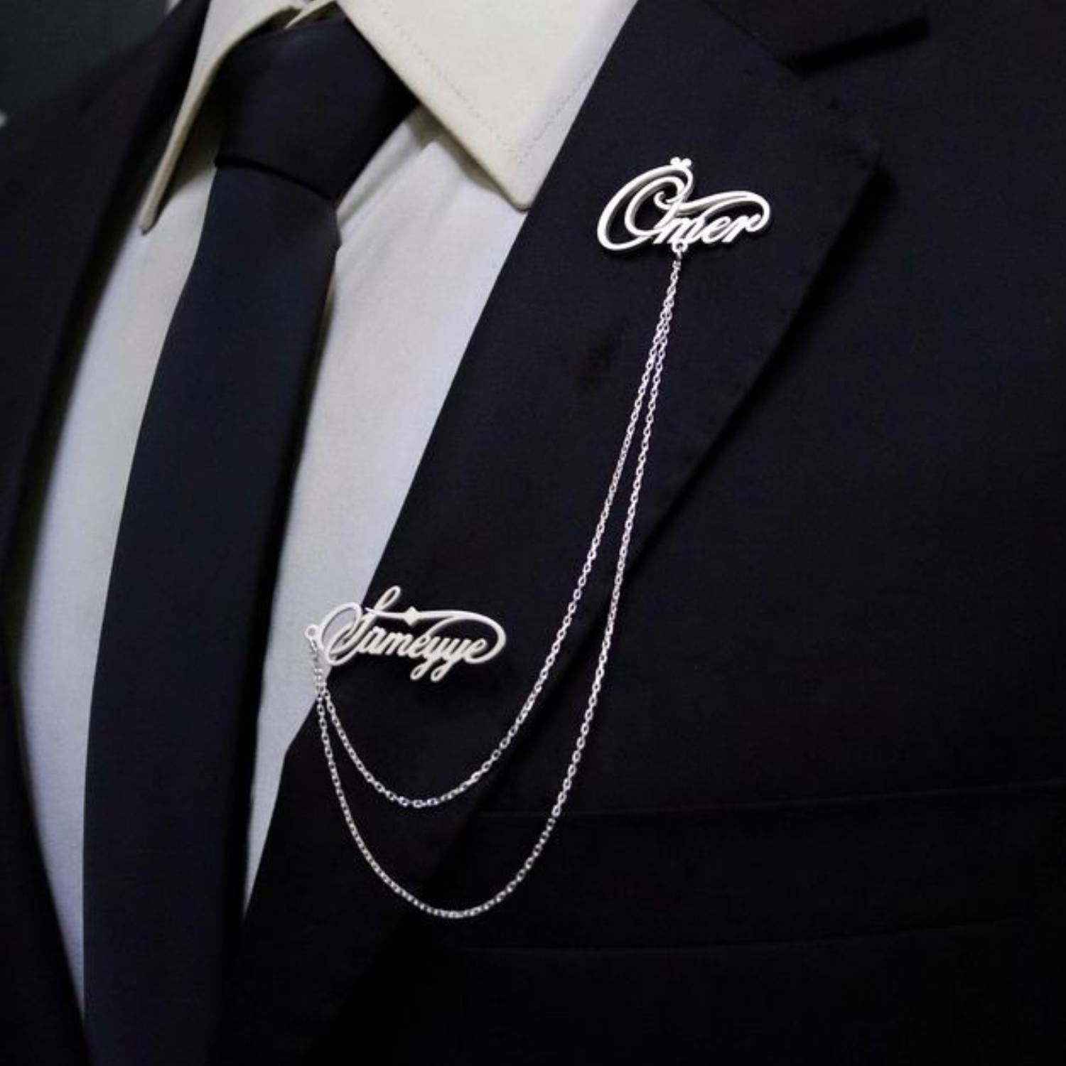 Create a lasting impression with a 22K anti-tarnish gold-plated and 925 silver customized double name chain brooch, the perfect accessory for weddings and special occasions. Crafted with the finest 22K gold plating, this brooch offers a luxurious, shiny finish while remaining resistant to tarnishing. The 925 silver base ensures durability and long-lasting beauty, making it a timeless piece to cherish. Personalize it with two names or initials, creating a unique and meaningful keepsake to celebrate your special day. Whether it’s for a wedding, engagement, or another momentous event, this custom name chain brooch adds a personal touch to any outfit. With its elegant design and high-quality materials, this brooch will be a cherished symbol of love and connection for years to come.