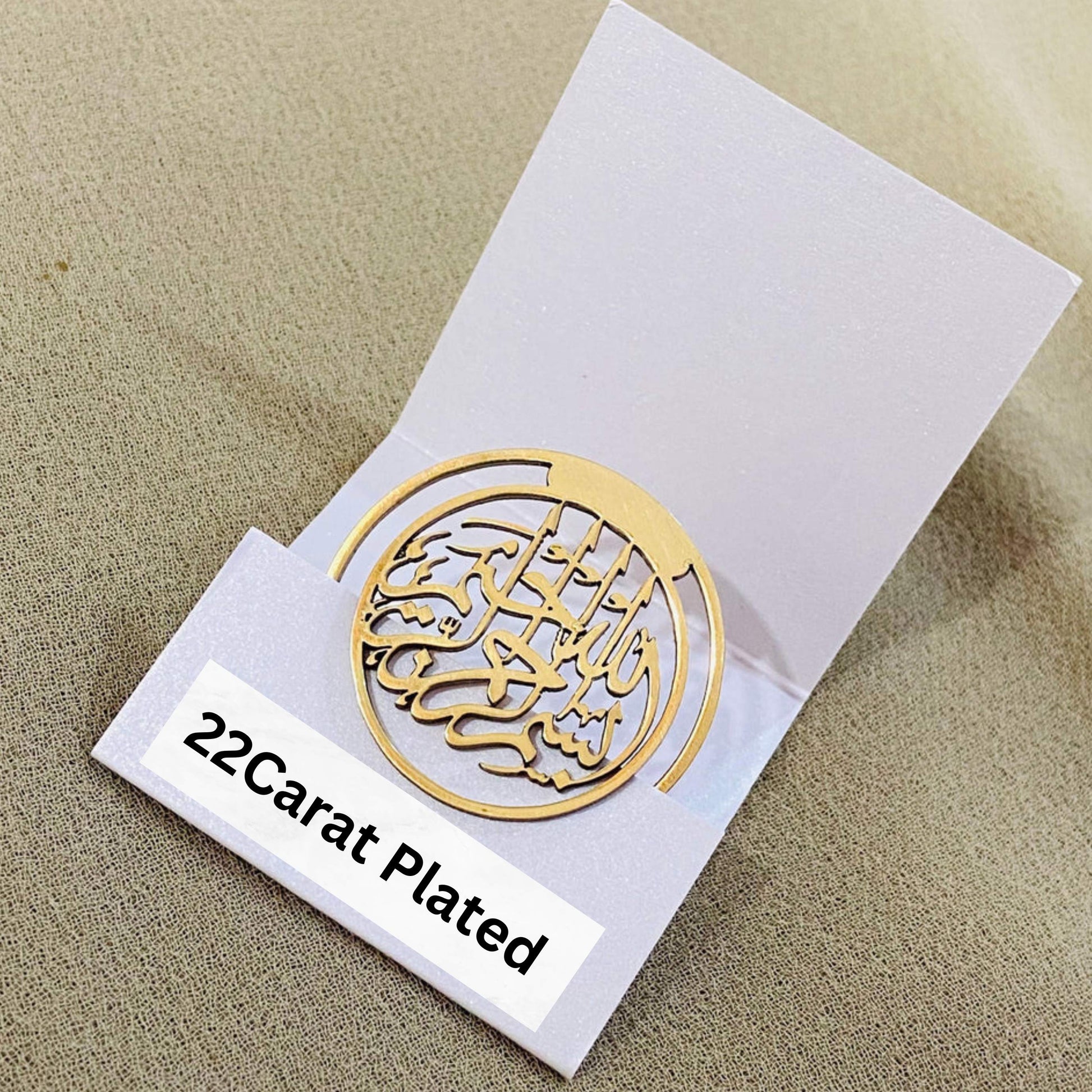 This elegant Quran bookmark is expertly crafted from pure brass and plated with a rich 22-carat gold finish, offering a perfect balance of durability and luxury. The anti-tarnish coating ensures that the bookmark retains its brilliant shine, preventing any fading or tarnishing over time. Its lightweight and slim design makes it an ideal addition to your Quran, adding a touch of sophistication and grace. Whether as a personal accessory or a thoughtful gift, this brass Quran bookmark combines timeless beauty and functionality, designed to last for generations. Material: Pure Brass Alloy |